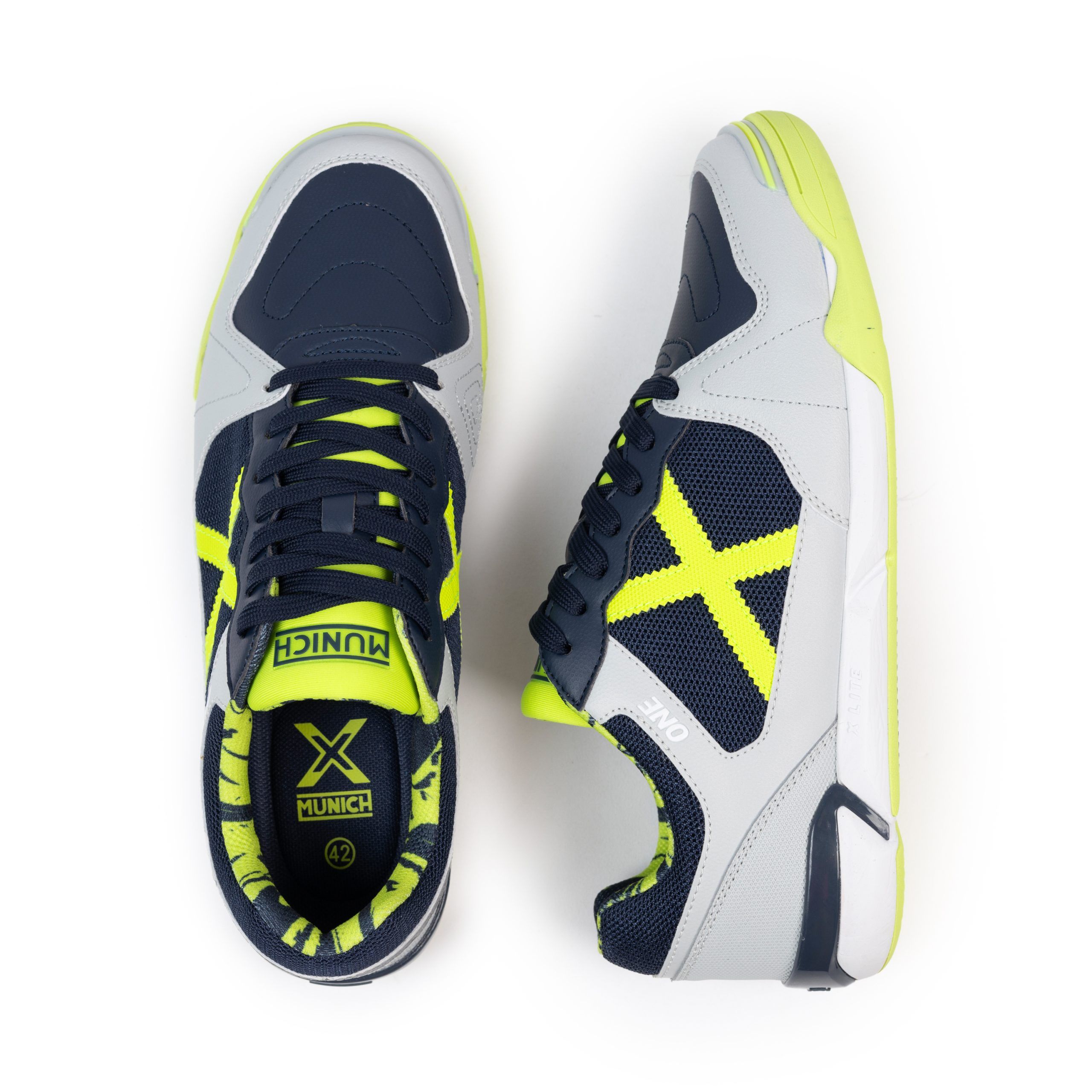 La One Indoor es la zapatilla de fútbol sala fabricada con base de rejilla y refuerzos de material sintético. Incorpora refuerzo de TPU en la puntera para una mayor solidez, contundencia y firmeza en el golpeo.